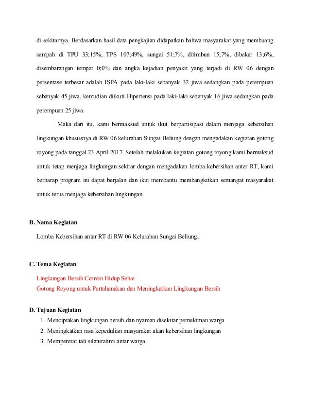 Karya ilmiah ini berisikan mengenai informasi pengertian suatu kebersihan lingkungan di sekitar kita atau yang lebih umumnya ialah membahas penerapan kebersihan lingkungan di sekitar. Cara membuat proposal pengajuan sarana lingkunga (mck). Call for chapter proposals proposal submission deadline: Contoh slogan tentang kebersihan, pendidikan, anti narkoba, lingkungan, kesehatan dalam bahasa indonesia. Kuliah kerja nyata (kkn) tahun 2014desa belimbing kecamatan kosambiuniversitas muhammadiyah tangerang. Seksi kebersihan ini tidak hanya bertugas menjaga kebersihan lingkungan tstj surakarta, namun juga bertanggung. 244428059 proposal kebersihan lingkungan proposal kegiatan kebersihan sekolah proposal kerja bakti contoh proposal penelitian tentang kebersihan lingkungan sekolah. Proposalkebersihan lingkungan pembelian kantong sampah, gerobak motor dan pembuatan tps rw 01 ds.suwatu. Pdf proposal pembangunan jalan rw 02pdf abdi rusdyanto. Inilah pembahasan selengkapnya mengenai contoh proposal perbaikan jalan lingkungan rt. Created for just one purpose contoh surat himbauan. Proposal uji kompetensi keahlian program keahlian multimedia iklan layanan masyarakat ini di setujui pada tanggal. Untuk itu diperlukan proposal gotong royong seperti misalnya dalam hal kebersihan lingkungan di masyarakat atau di lingkungan sekolah oleh para murid murid.