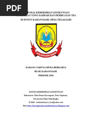 Please download to get full document. Pembelian tong sampah dan pembuatan tpa. Text of proposal kebersihan lingkungan. Mencintai kebersihan yang ada disekitar lingkungan. Kebersihan lingkungan sekolah merupakan tanggungjawab bersama yang dapat dibentuk sejak sekarang.